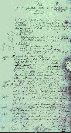 II, Exped. den Martin Wolffschen Eheleuten ein Hypo- Ricogn.[itions-] Schein über erfolgte Berichtigung des Besitztitels auf ihren Namen unter Vorheftung der zu den Acten eingebrachten Ausfertigung des Vertrages vom 8/14ten Januar 1818, des Teyerungs Consenses vom 1ten May 1822 und den Abgaben Nachweisung. Dies Document ist mori solito zu bilden mit dem Ingrosso Vermerke zu versehen und den Wolffschen Ehel. gegen D.J. zu zustellen.