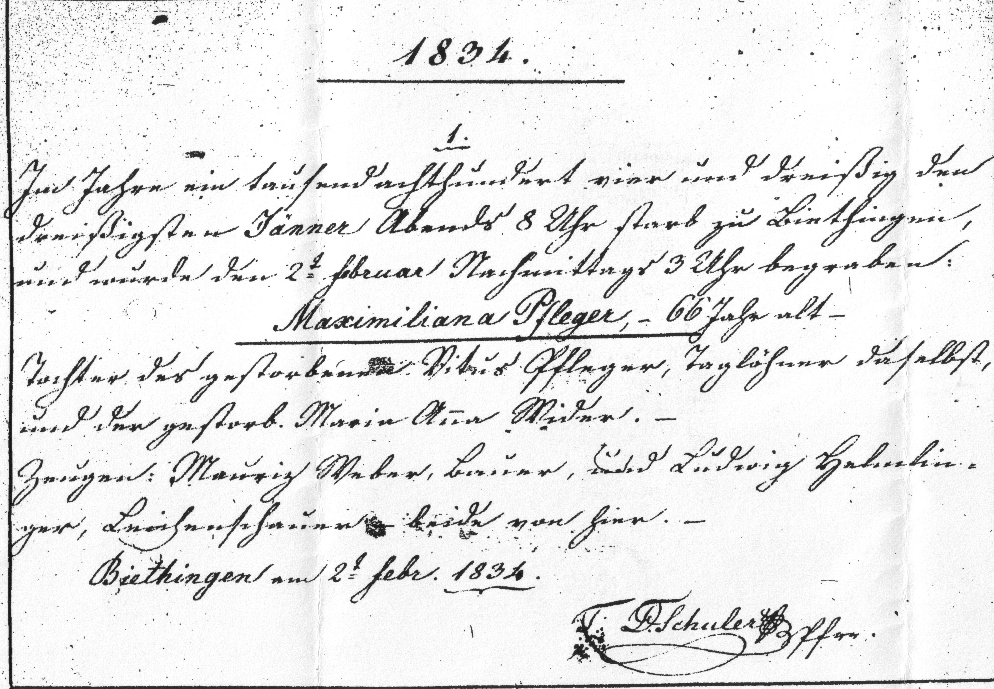 † Bietingen, Kreis Konstanz, Baden 30.01.1834 02.02.1834