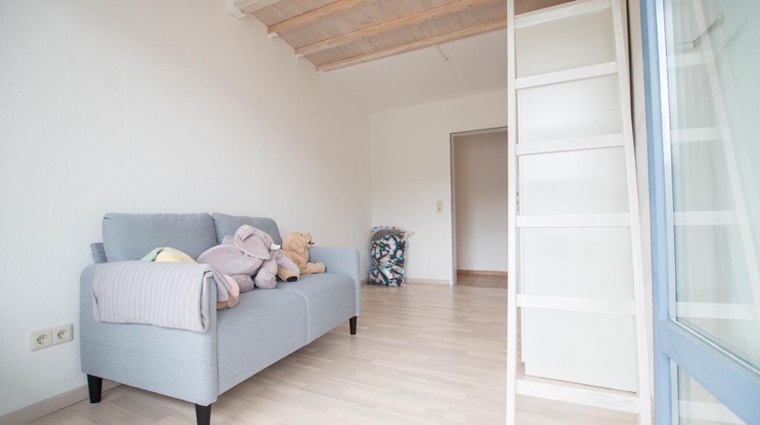 - Arbeits-/Gästezimmer im Dachgeschoss mit kleinem Balkon