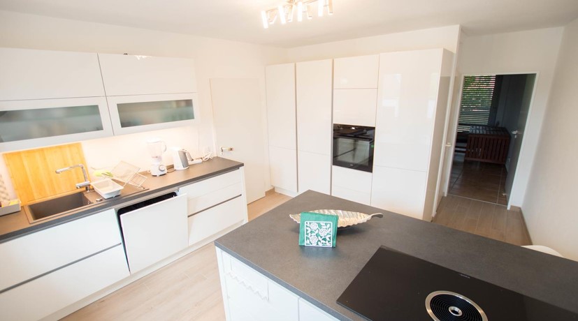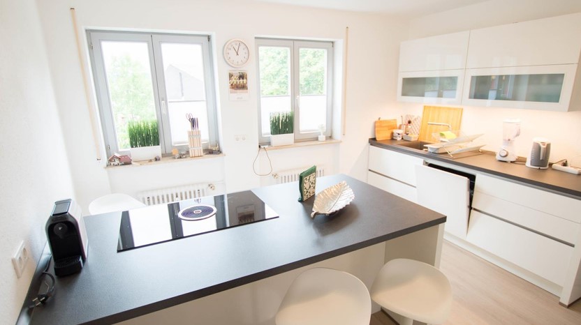 Einbauküche mit viel Stauraum, Kochinsel mit Induktions-Glaskeramik-Kochfeld